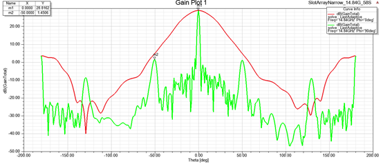 单根波导缝隙天线出了通过泰勒加权等调节缝隙参数降低副瓣,还可以通过扼流槽来很好的降低副瓣,效果十分明显。 通过调节槽深和槽宽 通过调节槽深和槽宽 ,可以实现接近-30dB的副瓣抑制。